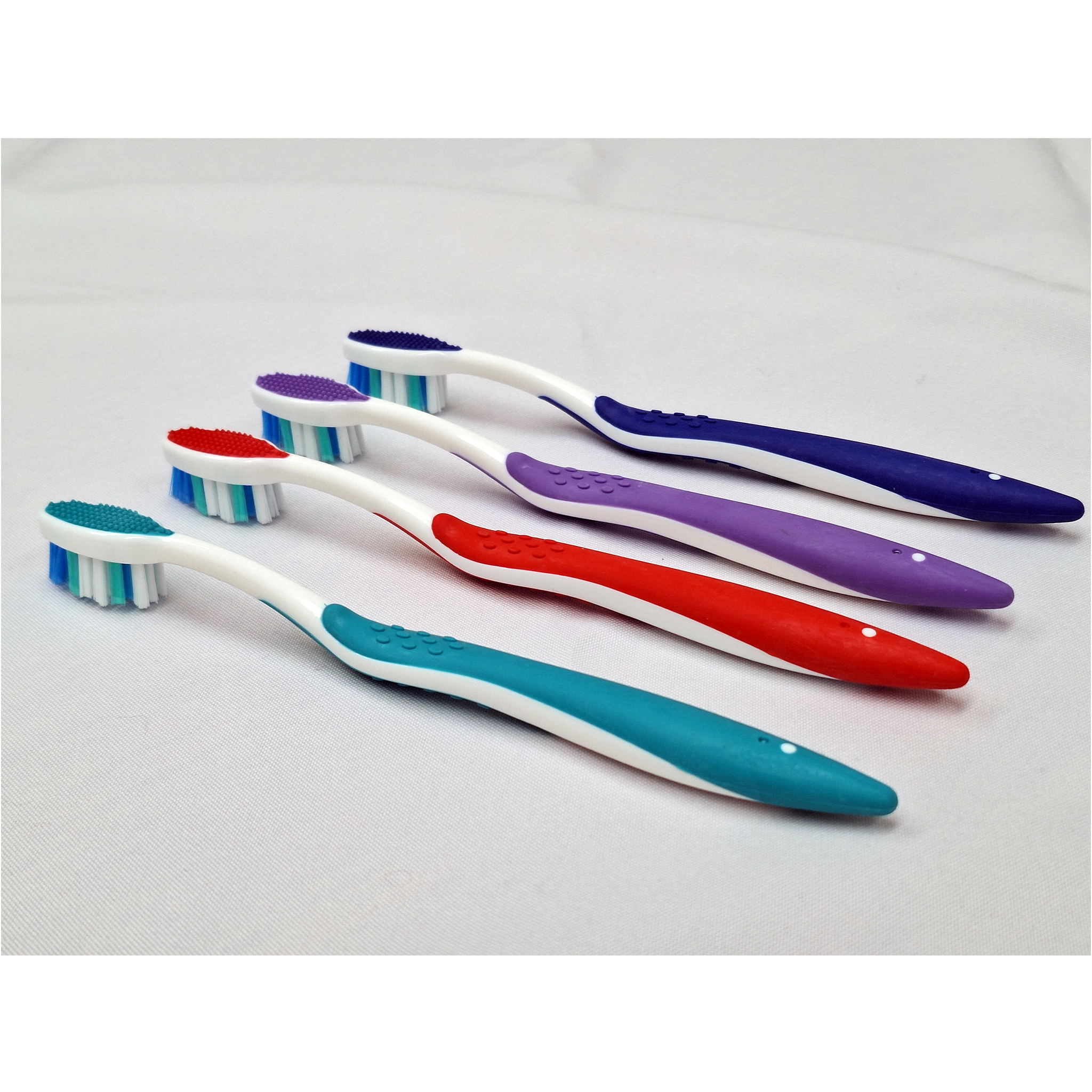 • 32 soft tufts in a wave bristle cut with tri-color bristles for thorough cleaning.