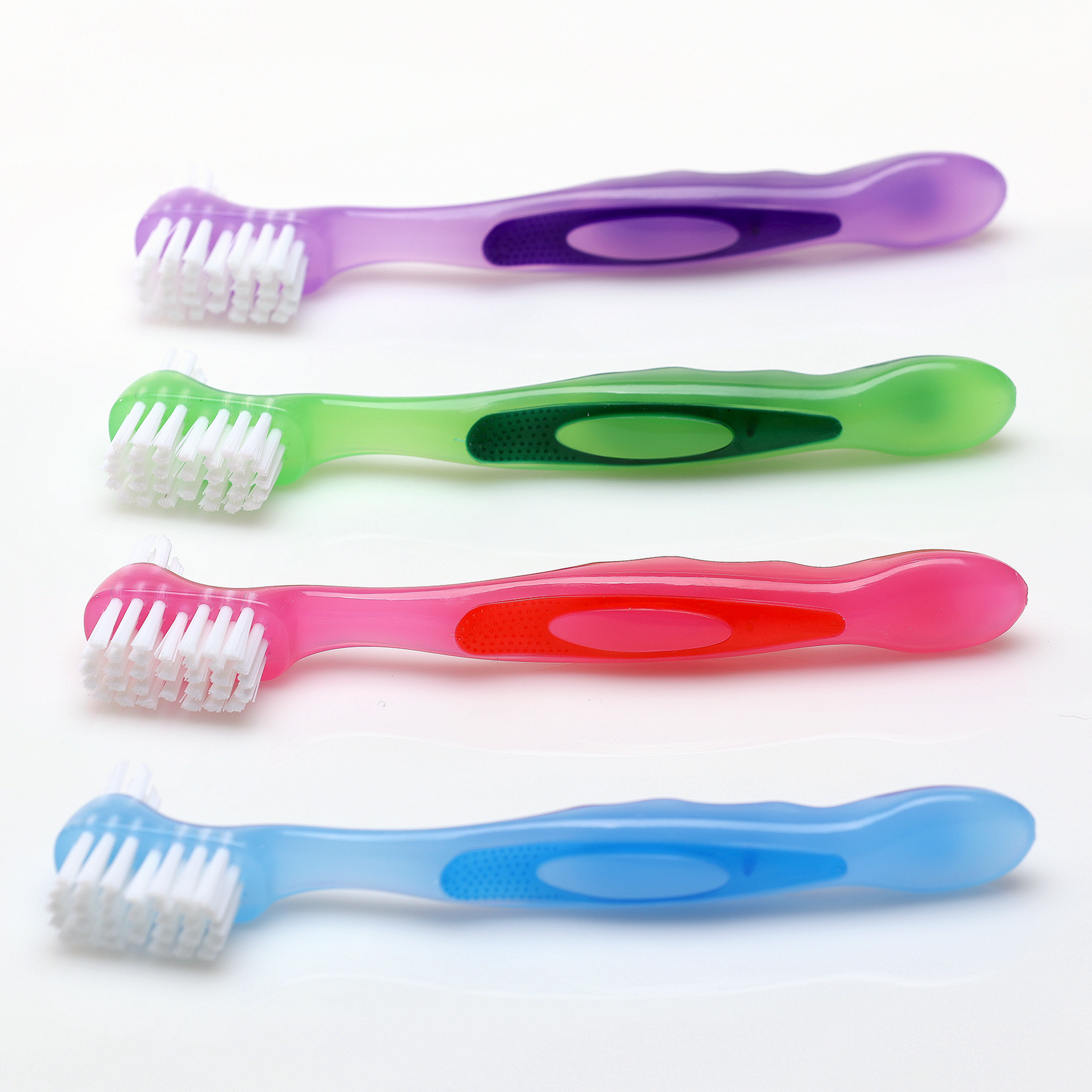 • Dual-headed bristles designed for thorough cleaning of dentures and appliances.
