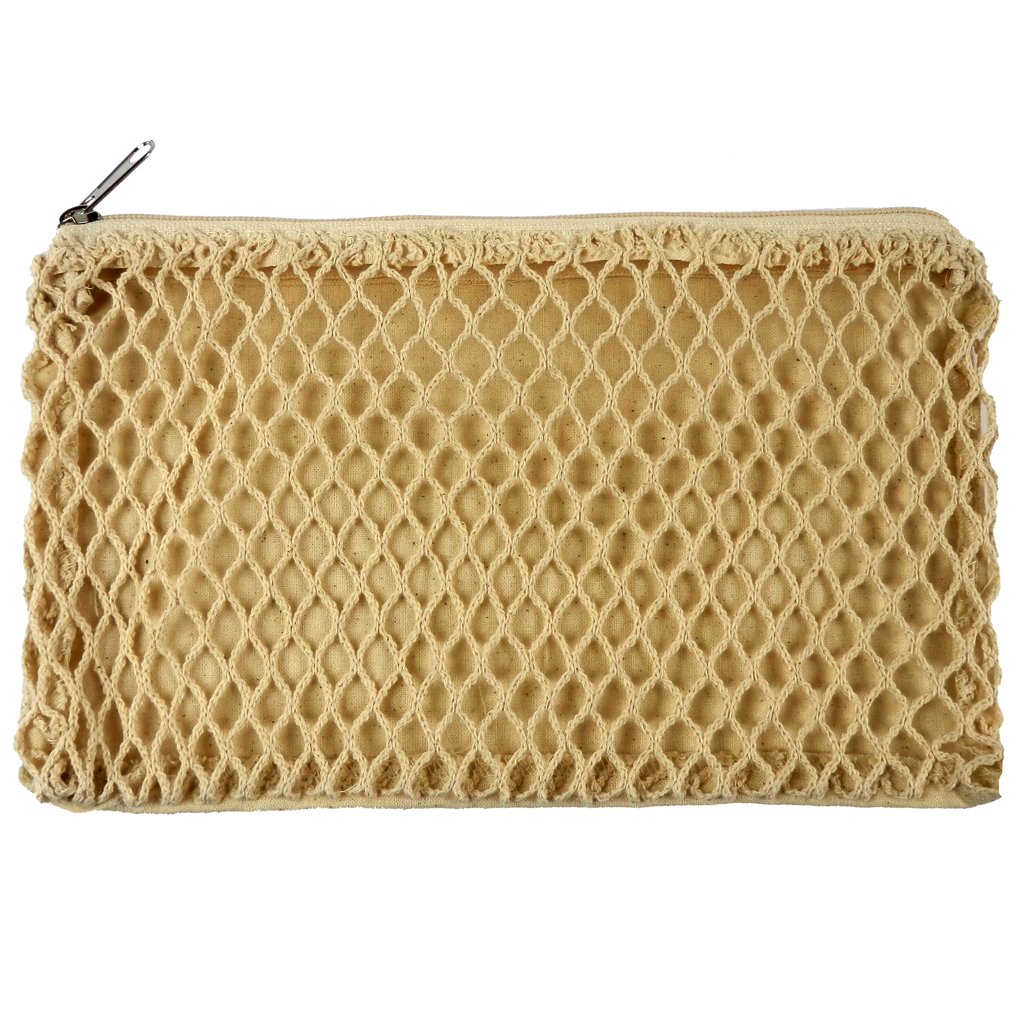 • Sustainable and reusable cotton mesh bag for storing dental hygiene products.