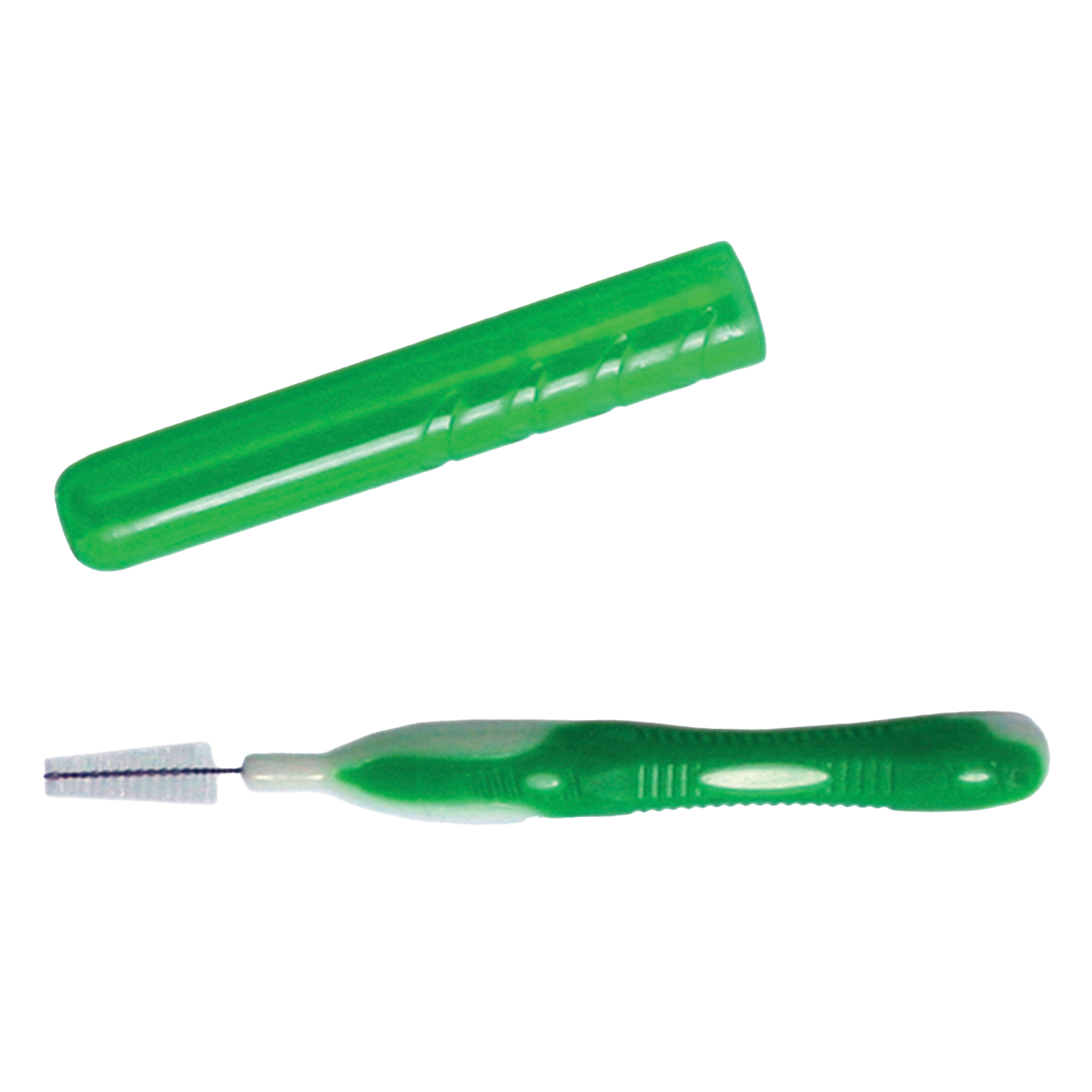 • Interdental brush with 0.25mm wire and nylon bristles in a tapered cone shape.
